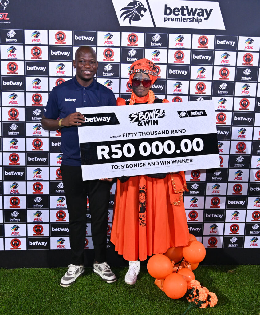 The excitement of the Betway Premiership S’bonise & Win campaign continued in Polokwane as supporter Maria Mokgahlane walked away with R50 000during the Dial Up fixture between Polokwane City and Orlando Pirates at the Old Peter Mokaba Stadium on Wednesday evening.
