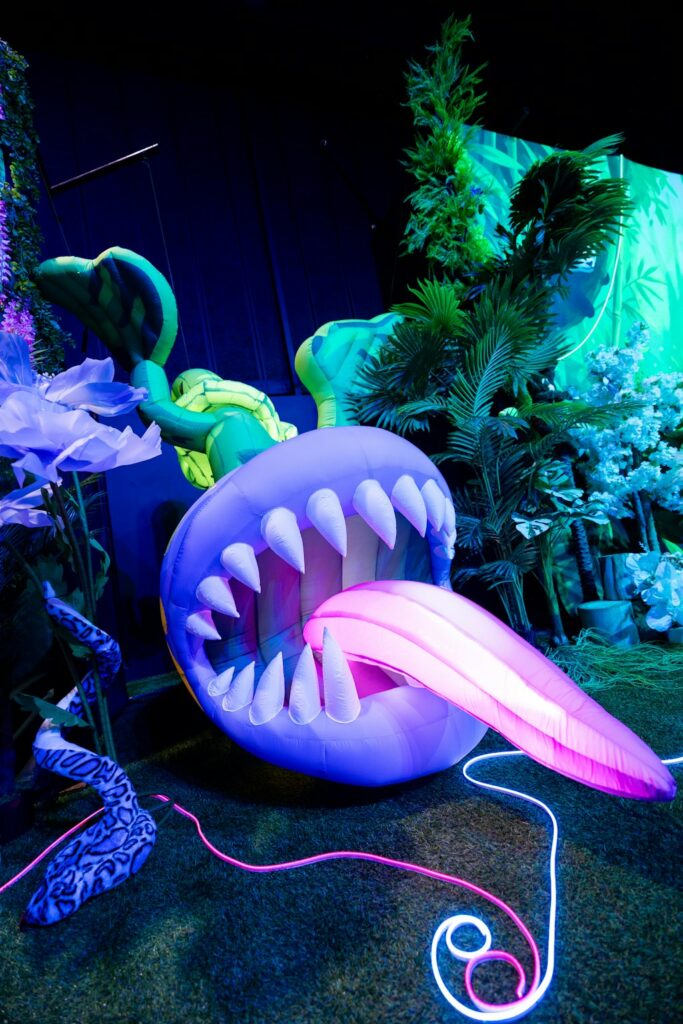 - Jungle Magic — a larger-than-life sensory jungle world that transforms a hall into an immersive experience filled with bold colour, jungle soundscapes, giant feature creatures, an indoor waterfall moment and a brave zone for curious kids.