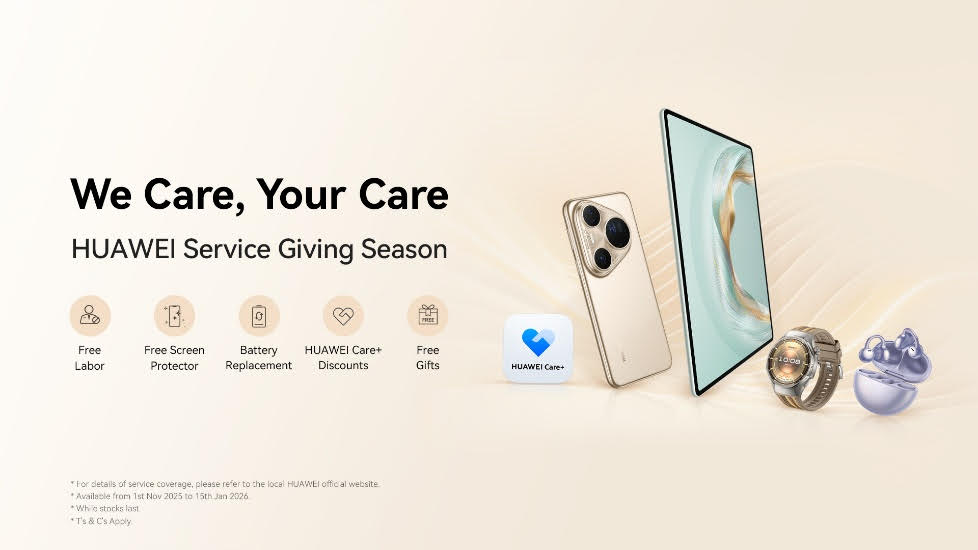 Huawei has announced the launch of its annual HUAWEI Service Giving Season, running from November 2025 to 15 January 2026, offering customers across South Africa access to a range of value-added service benefits designed to support device longevity and enhance the ownership experience.