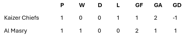 Presently, in Group D, Chiefs and Al Masry both have seven points. The Egyptians are ahead of Chiefs as they have a superior head-to-head record.