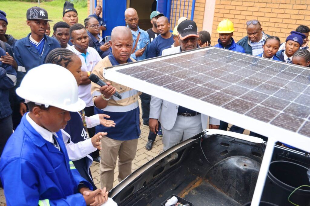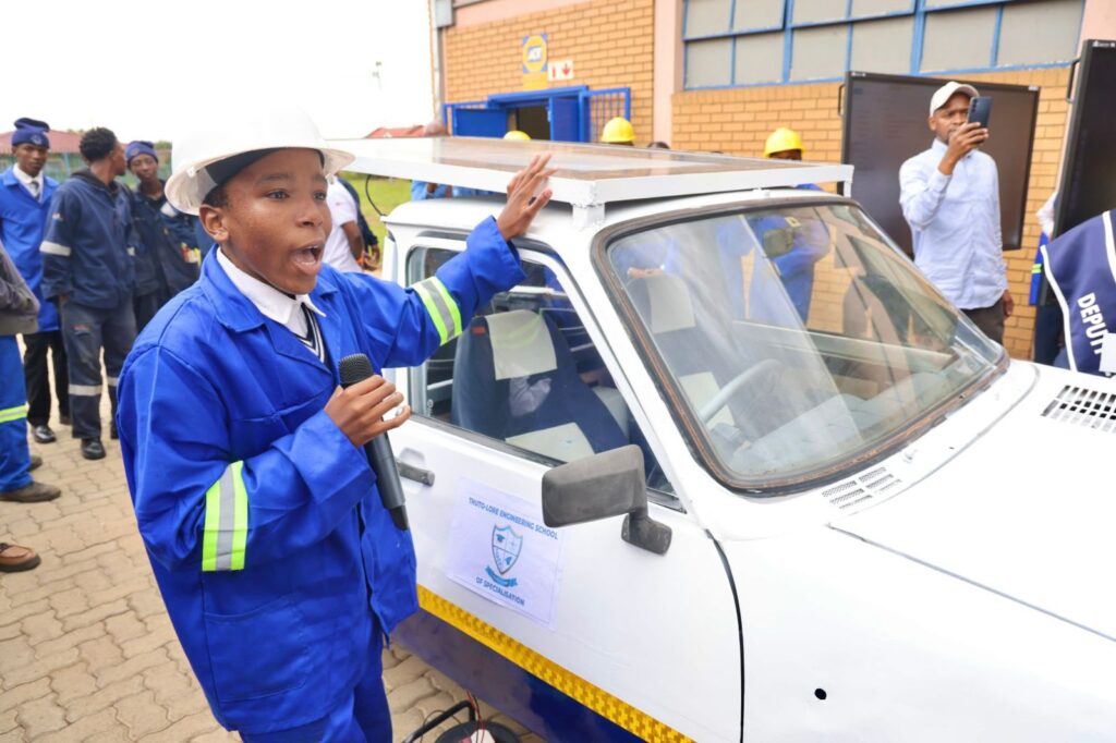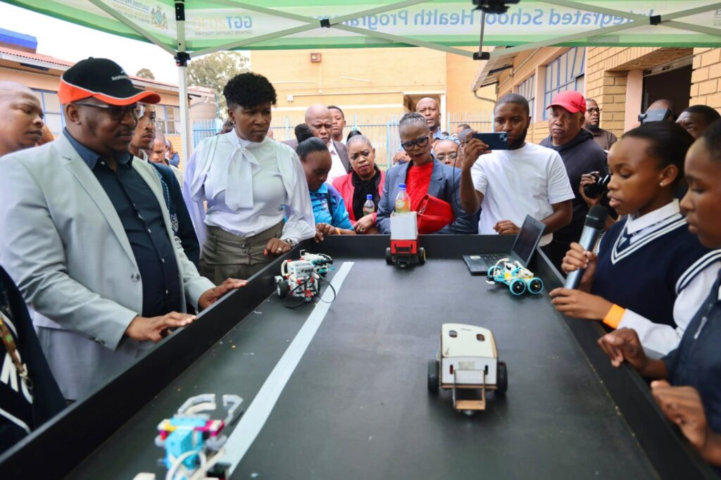 During the launch, MEC Chiloane and guests were treated to extraordinary technical demonstrations where learners bridged theory with practice. Showcasing their mastery of 4IR and Renewable Energy, learners proudly unveiled a fully electric solar-powered car. Demonstrating profound social impact and engineering ingenuity, they also presented a smart walking stick and smart glasses designed for visually impaired individuals; both devices utilize advanced sensors to detect obstructions and emit warning sounds to ensure safe navigation. Additionally, learners presented a Solar Powered Wind Turbine, advanced Robotics, and a custom Mini Braai demonstrating VOC skills.