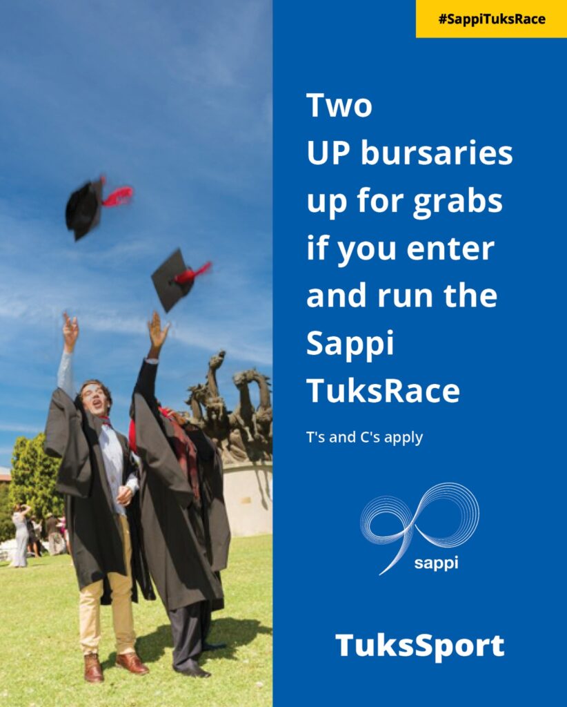 The Sappi TuksRace is not just a race – it’s a platform for positive impact and education in motion. With the Sappi TuksRace, we are merging fitness and opportunity! University of Pretoria Students who enter the race stand a chance to WIN a R5000 bursary towards their studies – because education shouldn’t stop when the finish line does. Let us Run, Learn and Achieve.